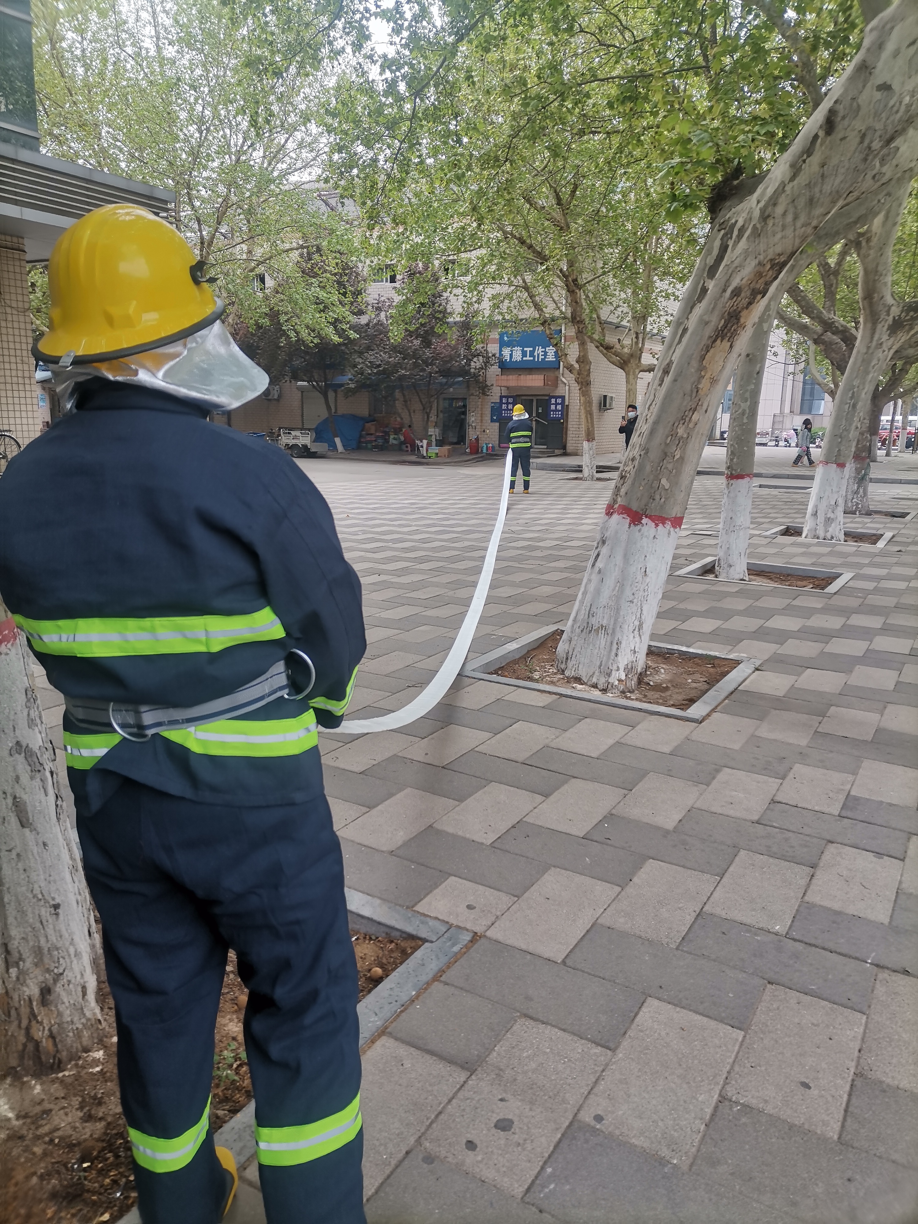 演练过程中,我院微型消防站工作人员遵循“早预防、早发现、早处置”的原则,按照各自岗位职责,以最快的速度穿戴好个人防护装备,携带灭火器材和通讯设备赶往火点确认火情,并根据灭火疏散逃生预案立即展开火灾扑救。
